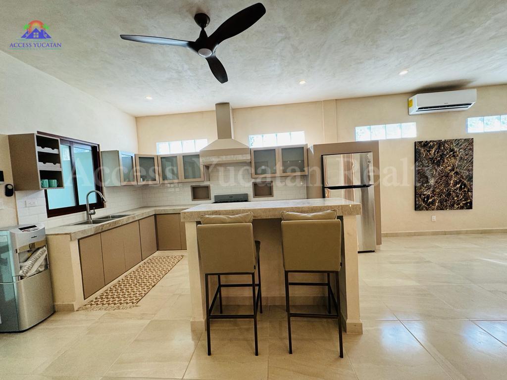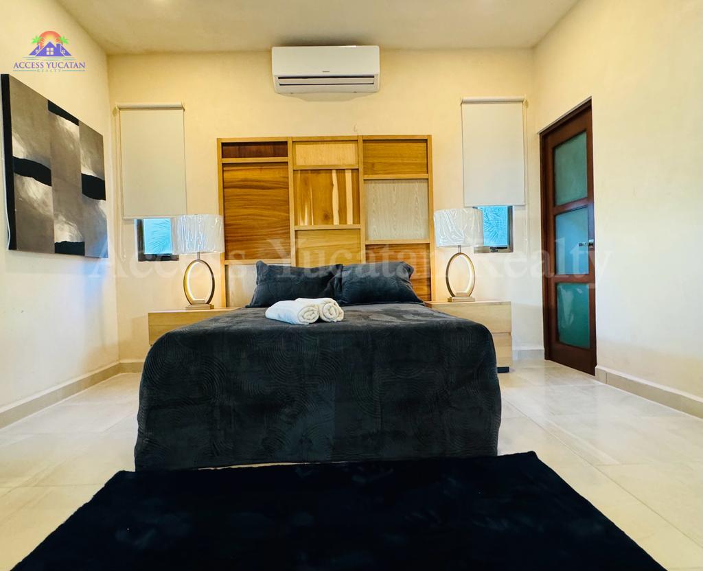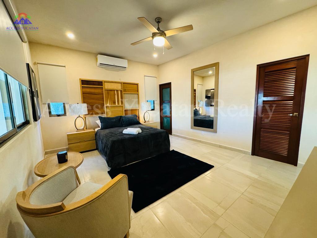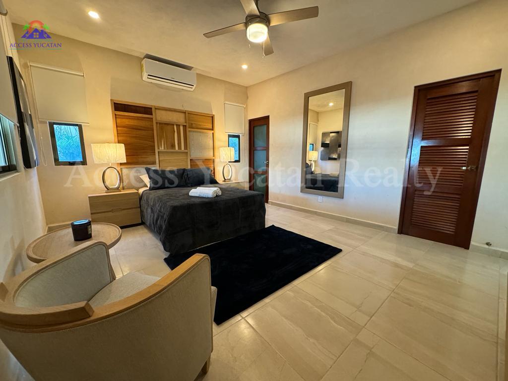 FOR YOUR COMFORT, THIS BEAUTIFUL CHUBURNA, MX HOME HAS BEEN BUILT SPACIOUSLY AND LUXURIOUSLY, LOCATED ON THE FIRST FLOOR, WE HAVE CONSTRUCTED THIS UNIT USING QUALITY MATERIALS AND HIGH-END FINISHES WITH A FLARE OF EXQUISITE JAPANESE DESIGN. FEATURES: TWO LARGE BEDROOM AND TWO AND A HALF BATHROOMS JAPANESE TOILET SEAT IN PRIMARY SUITE THREE LARGE TELEVISIONS CUSTOM DESIGN CEDAR WOOD KITCHEN QUARTZ COUNTERTOPS MODERN APPLIANCES EUROPEAN CHAMPAGNE COLORED ALUMINUM SLIDING DOORS AND WINDOWS CUSTOM-DESIGNED INTERIOR SOLID CEDAR DOORS TINTEX GLASS TOP-GRADE CERAMIC TILE FLOORING THROUGHOUT THE HOME PRIVATE ENTRANCE AND GARAGE PRIVATE FRONT PORCH PRIVATE LAUNDRY ROOM WITH WASHER/DRYER INCLUDED LARGE STORAGE UNIT TURN KEY WITH HIGH-END FURNISHINGS INCLUDED JUST 2 MINUTES WALK TO THE BEAUTIFUL GULF OF MEXICO 1926 FT2/ 170 M2 OF LIVING SPACE 290 FT2/27 M2 OF TERRACES 376 ST2/35 M2 GARAGE SOLAR PANELS INSTALLED FOR COMMON AREA TO REDUCE HOA MONTHLY FEES.