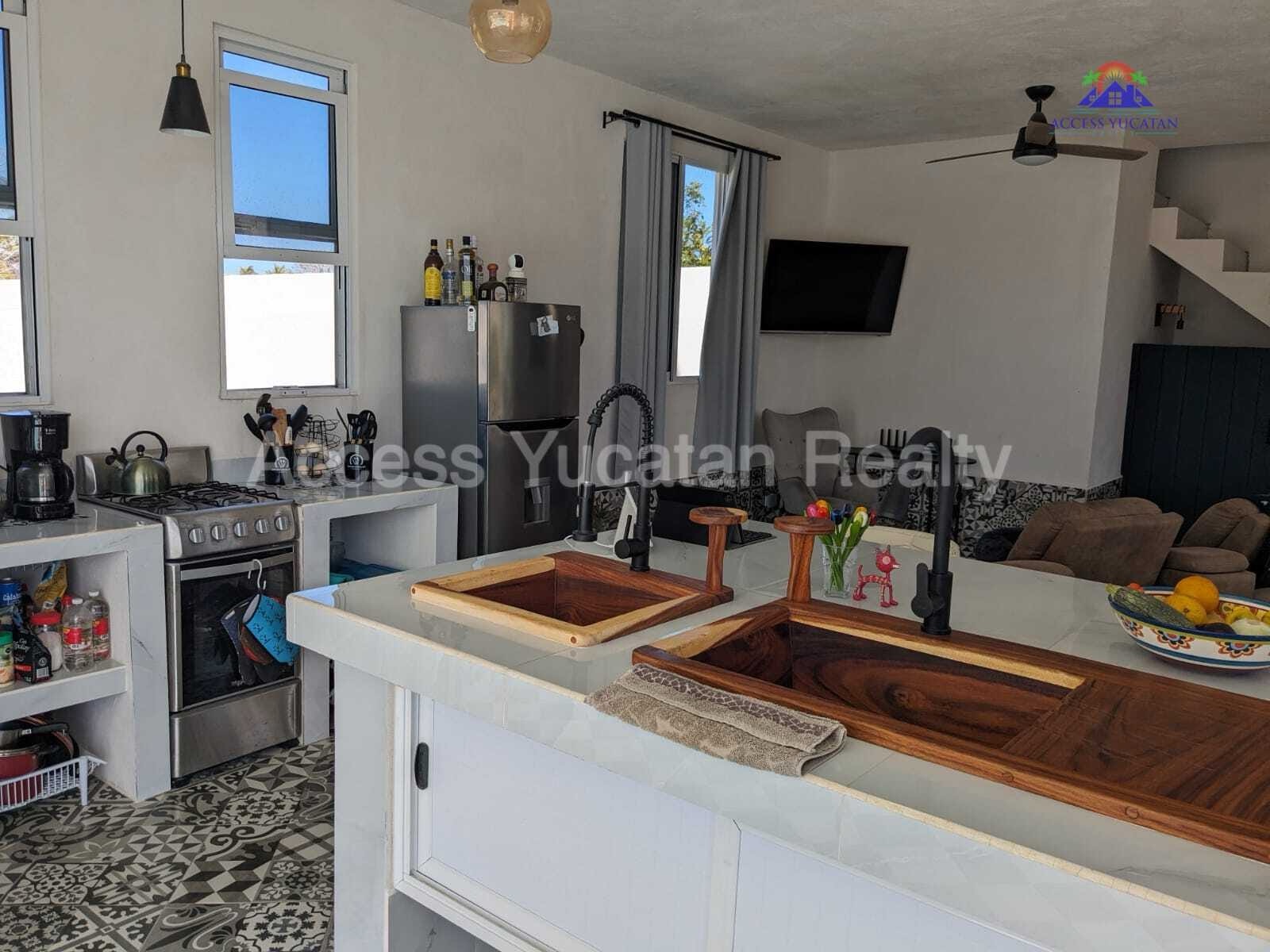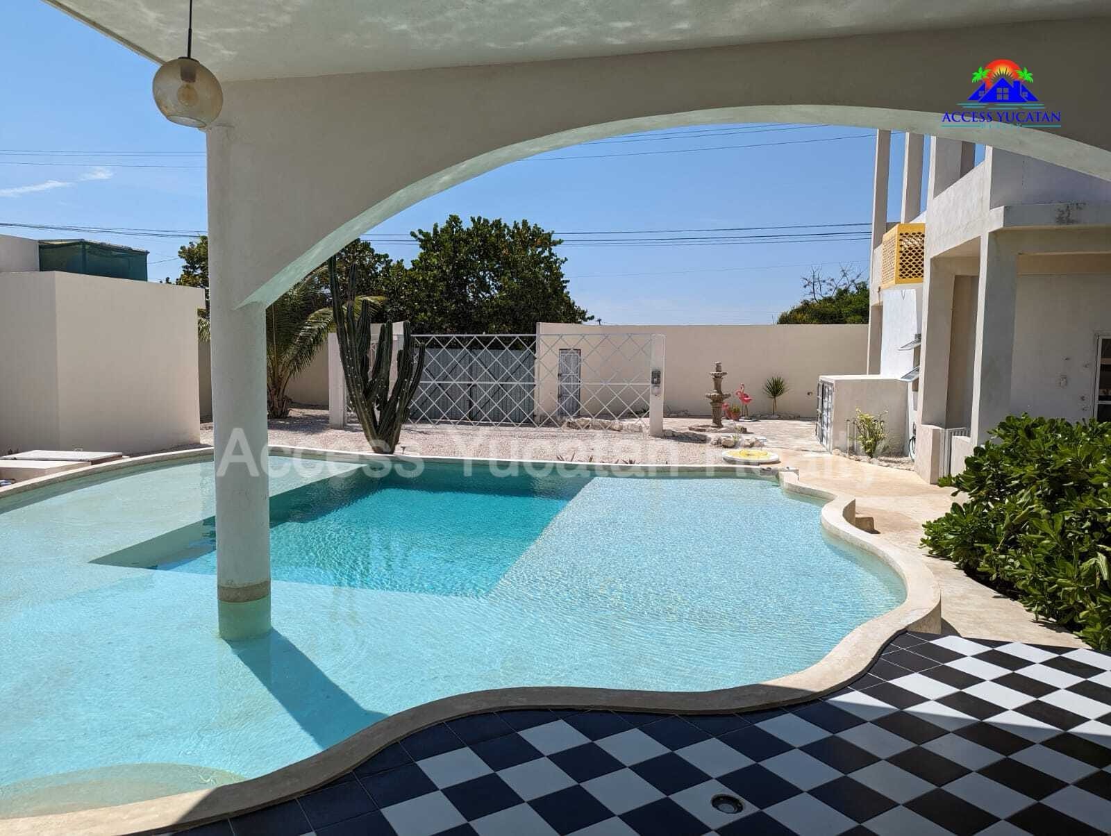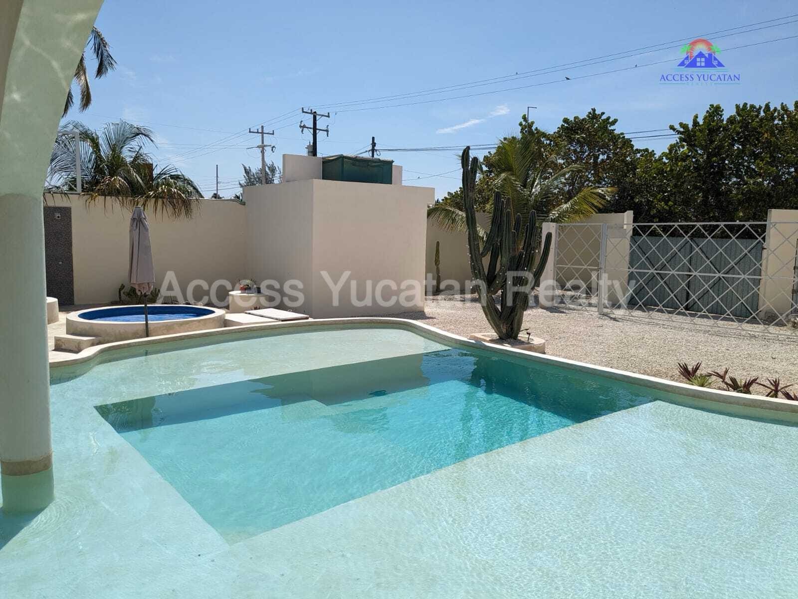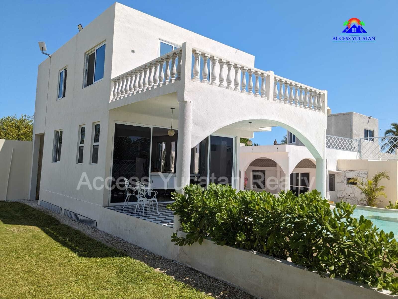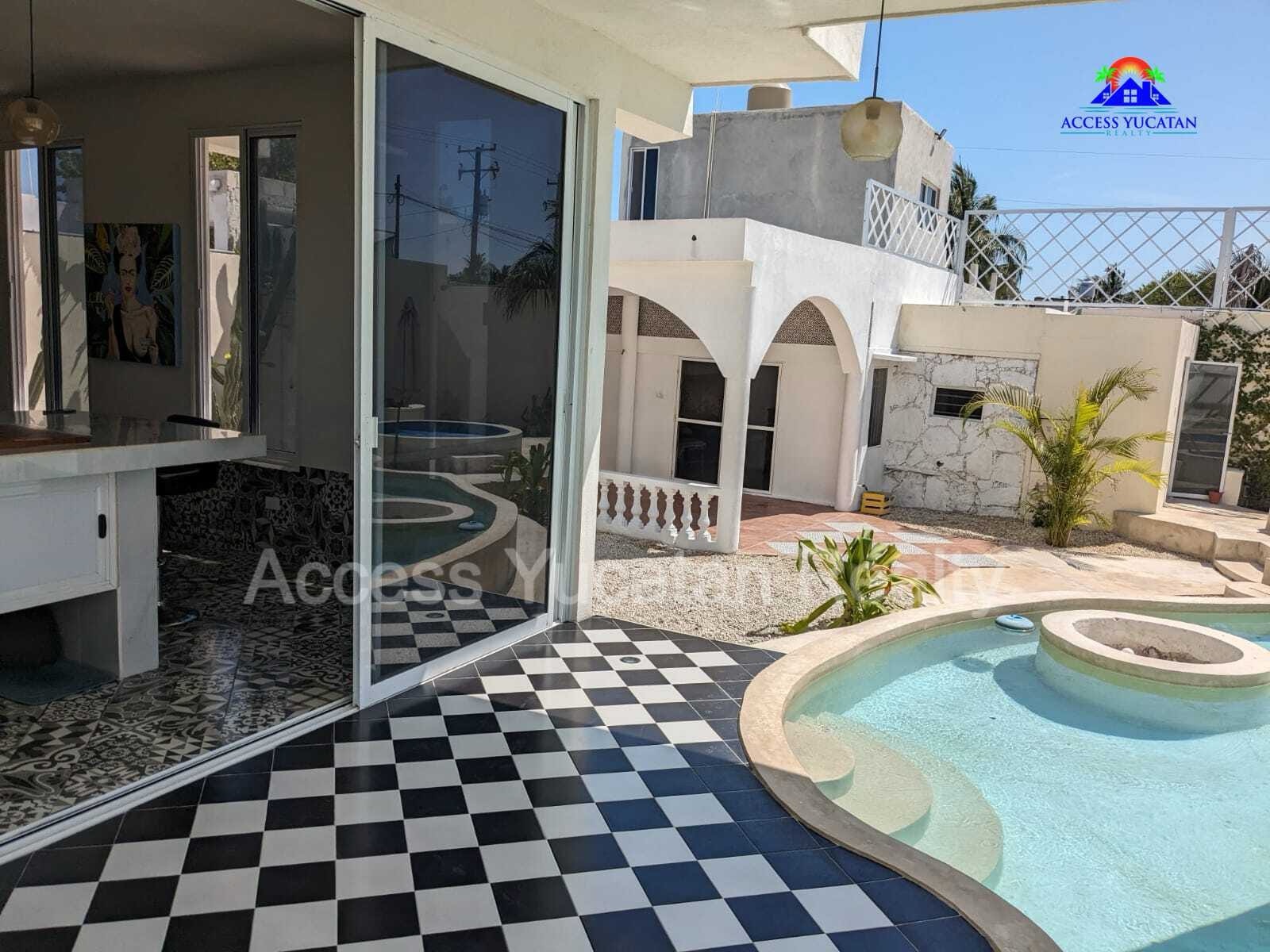 THIS IS A 5 BEDROOM 5.5 BATH PROPERTY WITH 3 SEPARATE BUILDINGS. OVERSIZED 1311.86 M2 LOT. 7 MINUTE WALK TO THE BEACH AND ABOUT 14 MINUTE WALK TO TOWN AND RESTAURANTS. FULLY WALLED AND GATED. FULLY FURNISHED AND TURNKEY WITH SMART HOME TECHNOLOGY CONTROLLED VIA CELL PHONE. THIS WOULD BE AN EXCELLENT AIRBNB RENTAL PROPERTY OR A MULTIFAMILY BEACH HOME. AMENITIES INCLUDE: MAIN HOUSE 2 LEVELS 1 MASTER BED UP, LIVING ROOM, KITCHEN HALF BATH DOWN 2ND HOUSE 3 LEVELS 3 BEDS EACH WITH BATH, KITCHENETTES CASITA 1 BED, BATH, KITCHENETTE SPECTACULAR POOL WITH LOUNGING PLATFORM HEATED JACUZZI TUB COLD PLUNGE POOL HEATED SAUNA ROOM OUTDOOR SHOWER SEPARATE ENTRANCES FOR ALL 5 UNITS MULTIPLE COVERED BALCONIES FOR AWESOME VIEWS LIGHTED SOCCER FIELD, RIDING MOVER INCLUDED 18KW AUTOMATIC GENERATOR FOR ENTIRE PROPERTY SOLAR SYSTEM A/C SECURITY CAMERA SYSTEM 3 DEEP WELLS WITH PRESSURIZED WATER AUTOMATIC IRRIGATION SYSTEM PLENTY OF INDOOR AND OUTDOOR STORAGE NICELY LANDSCAPED SECURED PARKING OWNERS ARE ASKING $449,000 USD FOR MORE INFORMATION AND OR TO SCHEDULE A VISIT CONTACT: TOM STEC +52-999-493-5066 WHATSAPP THOMASJSTEC@GMAIL.COM ACCESSYUCATANREALTY.COM