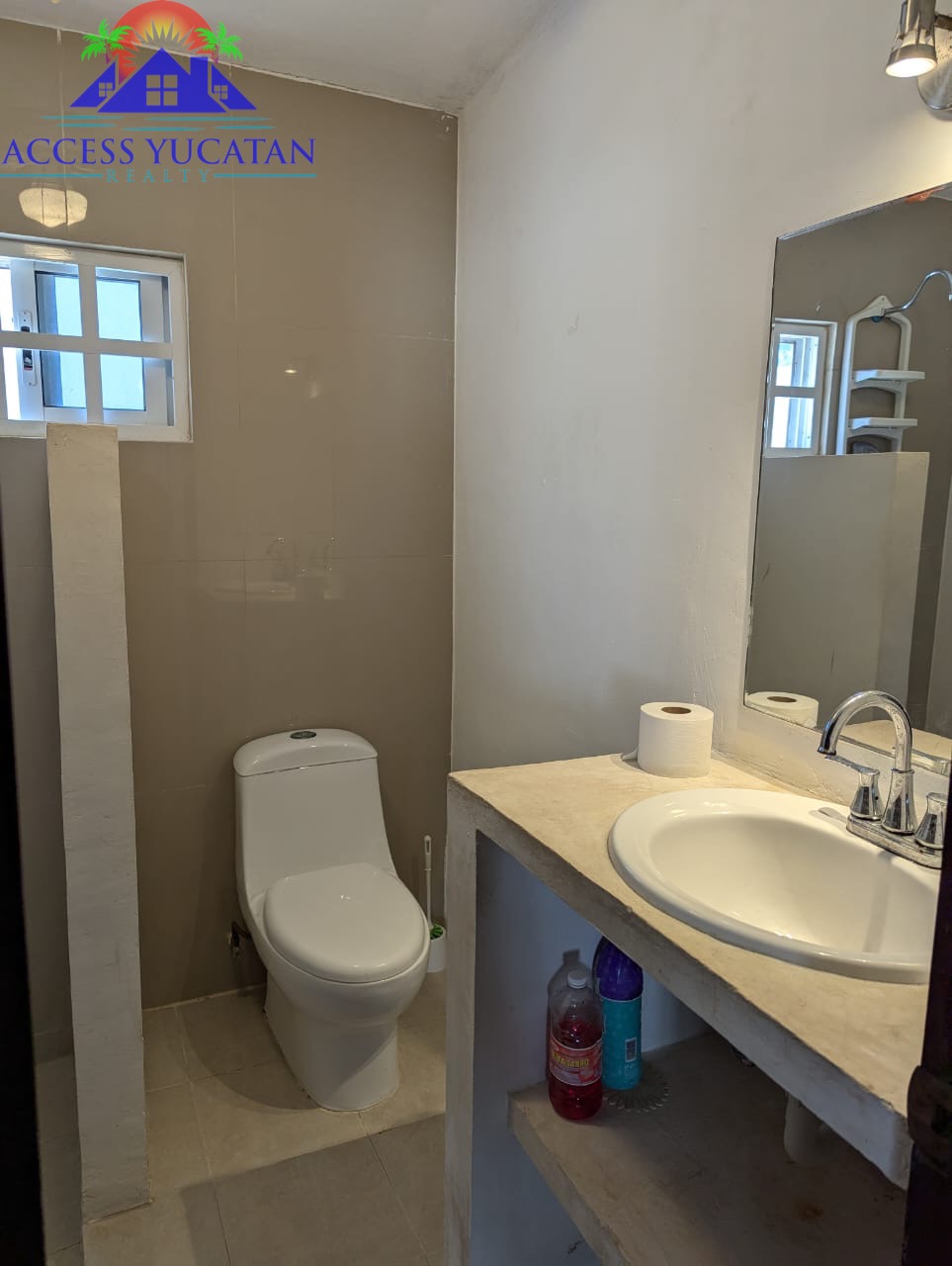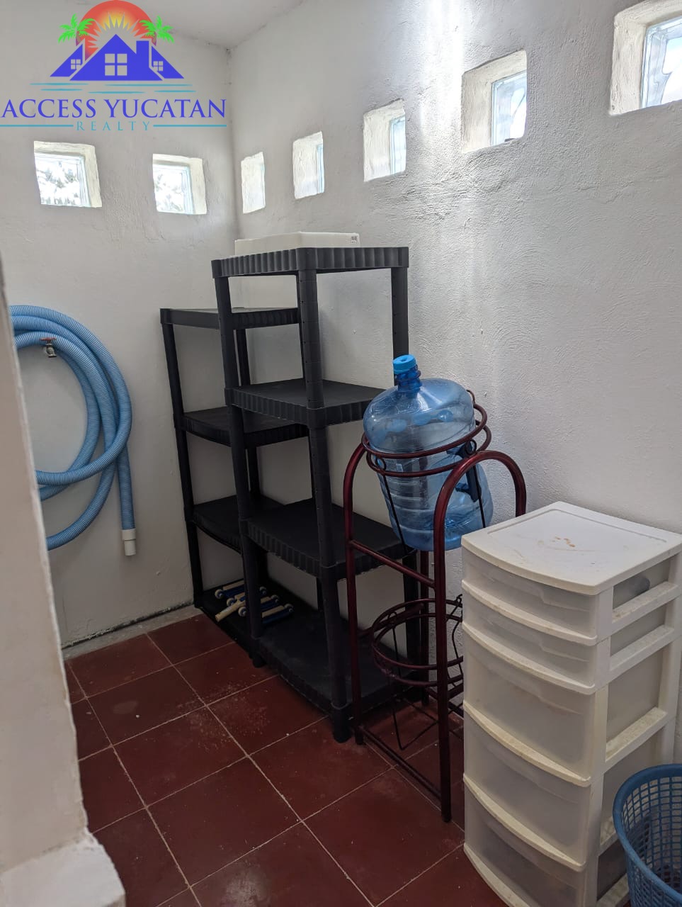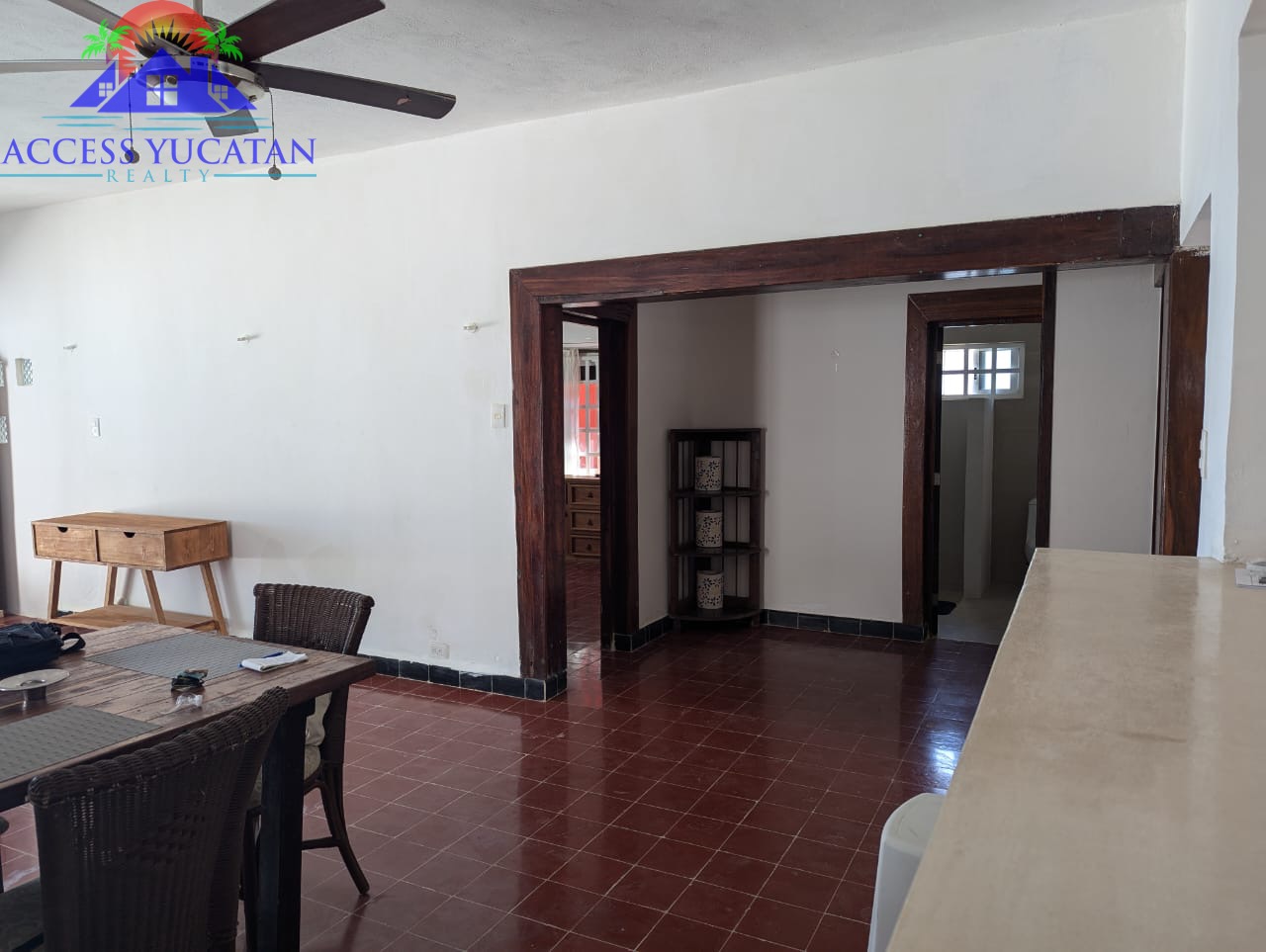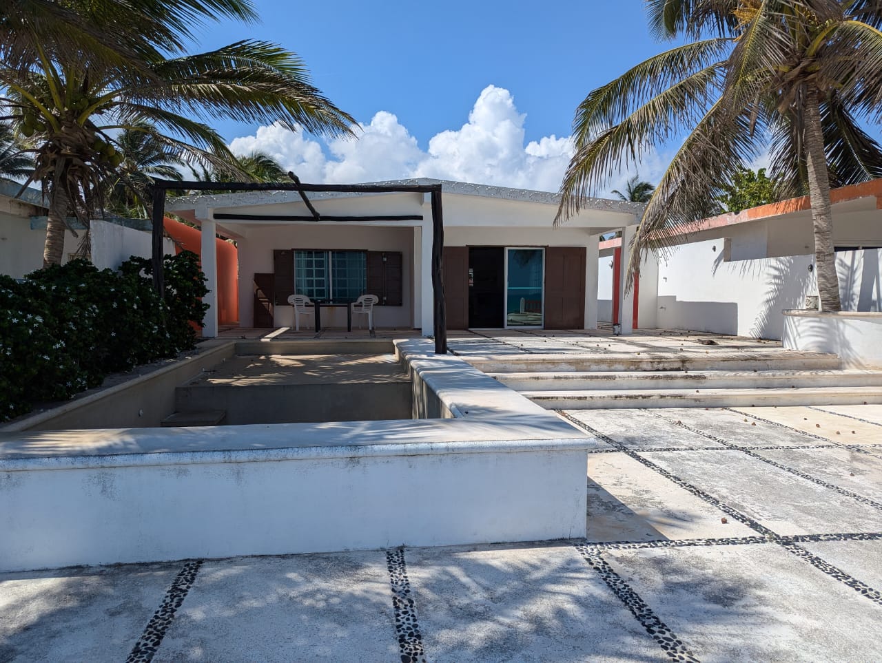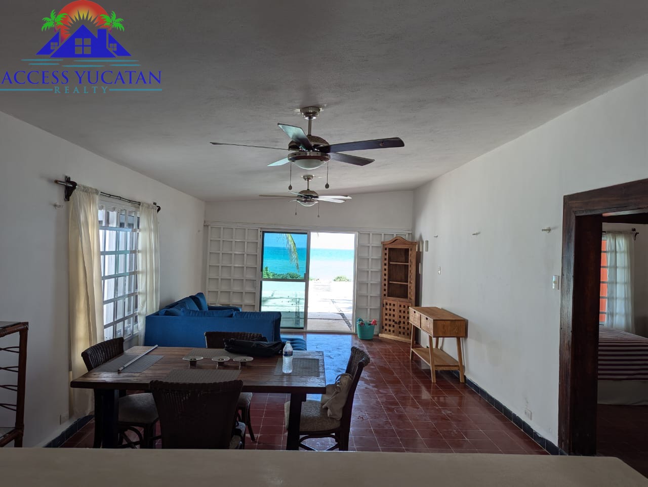 CASA DE PEZ VELA IS A BRIGHT WELL MAINTAINED 2 BEDROOM 1 BATHROOM BEACH HOUSE IN THE EDGE OF TOWN. WALLED AND GATED WITH PLENTY OF COVERED PARKING. REMODELED KITCHEN FEATURES A DOUBLE SINK AND LARGE WALK IN PANTRY WITH A BREAKFAST BAR. GREAT ROOM WITH SLIDERS OPENS TO A PARTIALLY COVERED DOUBLE TERRACE OVERLOOKING THE GULF AND A LARGE FILTERED POOL WITH BUILT IN LOUNGE AREA AND BUILT IN SEATING IN THE DEEP END. LOTS OF OPTIONS FOR EXPANSION WITH THIS PROPERTY. EVERYTHING IS INCLUDED, FURNITURE, APPLIANCES, DOWN TO THE KITCHEN UTENSILS. JUST OPEN THE GATE, STEP ONTO THE BEACH AND LET YOUR MEXICAN DREAM BEGIN. LOT APPROX 11M X 35M ORIGINAL MEXICAN TILE AND WOODWORK ALUMINUM SLIDING GATE WALLED REMODELED KITCHEN AND BATH ALUMINUM WINDOWS, SCREENS, PROTECTORES HURRICANE SHUTTERS PRESSURIZED CITY WATER, WELL WATER STATIONARY GAS TANK LARGE BUILT IN SAFE A/C IN MASTER SEAWALL AND GATE TELMEX FIBER OPTIC INTERNET THIS IS THE BEACHFRONT BARGAIN YOU HAVE BEEN WAITING FOR! OFFERED AT 449000 USD FOR MORE INFORMATION OR TO SCHEDULE A SHOWING CONTACT TOM STEC ON WHATSAPP 52 9994935066 ACCESSYUCATANREALTY.COM