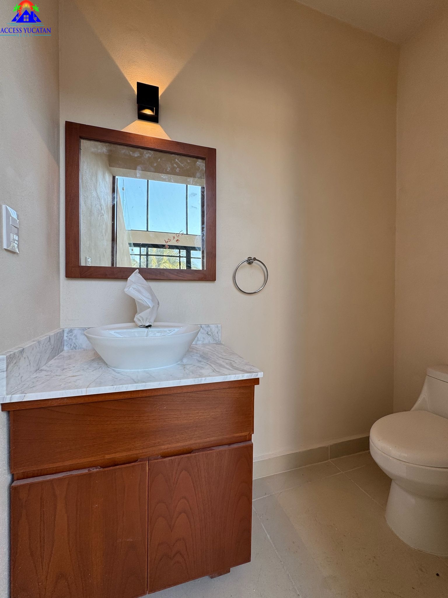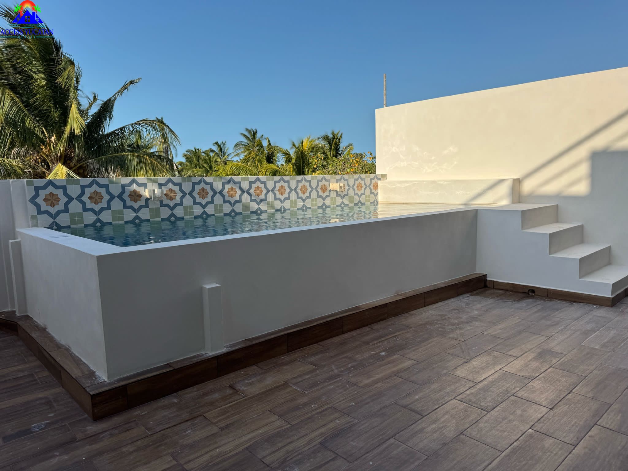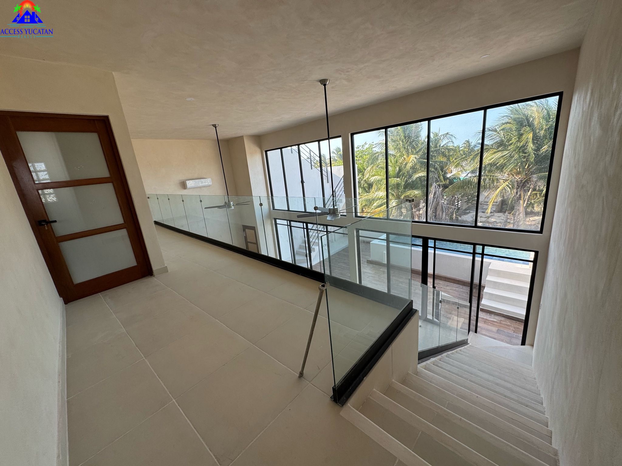 VILLA 4. NEW CONSTRUCTION BEACH VILLA BY YOKOSO DEVELOPERS IN CHELEM YUCATAN, MX. THIS VILLAS IS DESIGNED WITH A CONTEMPORARY OPEN PLAN DESIGN. YOU WILL FIND EXPANSIVE CEILINGS AND GLASS FOR INCREDIBLE LIGHT AND VIEWS. THERE IS A LARGE LIVING AREA WITH DINING, GUEST BATHROOM AND A KITCHEN DESIGNED FOR GREAT HOME COOKS. UPSTAIRS A GUEST SUITE WITH ENSUITE BATHROOM AND CLOSET AND A PRIMARY SUITE AND ENSUITE BATHROOM WITH DOUBLE VANITIES, SHOWER, BATHTUB AND A LARGE CLOSET. IF YOU PASS OUTSIDE TO THE LARGE BALCONY AND POOL, YOU WILL SEE WHY THIS IS SUCH A GREAT PLACE TO LIVE. YES, THERE IS A FILTERED POOL RIGHT ON YOUR BALCONY. LOTS OF ROOM TO ENTERTAIN FAMILY AND FRIENDS. VILLA 4 AMENITIES: ECO FRIENDLY DOUBLE HEIGHT CEILINGS NO GAS GUEST BEDROOM WITH ENSUITE BATHROOM AND CLOSET PRIMARY SUITE WITH ENSUITE BEDROOM AND CLOSET HALF BATHROOM ON MAIN FLOOR DESIGNER KITCHEN ALL ELECTRIC WITH INDUCTION COOKTOP LAUNDRY AREA PRIVATE POOL ROOF TOP TERRACE GARAGE WITH ELECTRIC OPENER